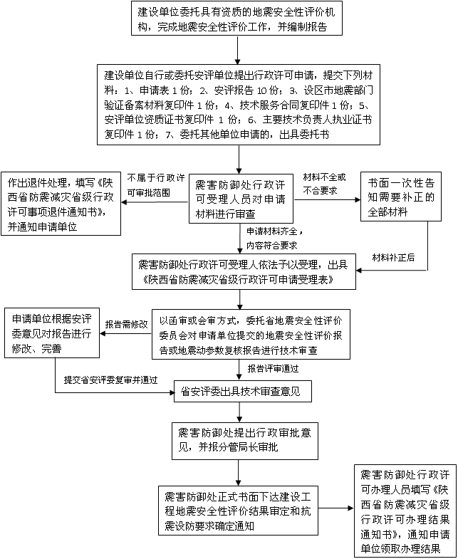审批范围:初审本省行政区域内国家重大建设工程、涉及我省的跨省(自治区、直辖市)建设工程和核电站、核设施建设工程的地震安全性评价结果;审定省内其他建设工程的地震安全性评价结果或地震动参数复核结果和确定抗震设防要求。