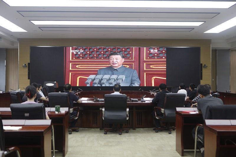 9月3日上午,365BET官方网站组织全体干部职工,分三个会场集中收看纪念中国人民抗日战争暨世界反法西斯战争胜利80周年大会直播盛况。